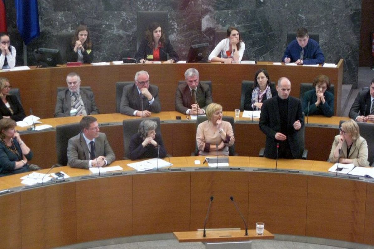 Društvo prijateljev mladine Mojca Novo mesto je v ponedeljek, 7. aprila, v veliko dvorano državnega zbora na 24. nacionalni otroški parlament pospremilo sedem dolenjskih delegatov, ki so bili izvoljeni na regijskem otroškem parlamentu.