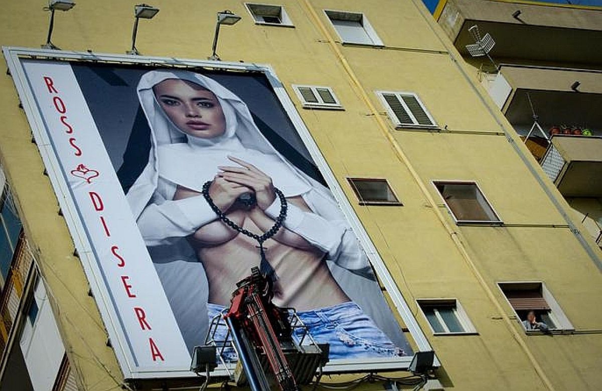 V Neaplju se te dni pripravljajo na obisk papeža Frančiška. Konservativnejši del prebivalstva pa je ogorčen, ker je modno podjetje Rosso di Serra na steno bloka postavilo devet metrov velik oglas, na katerem si v redovnico oblečena ženska delno zakriva prsi.