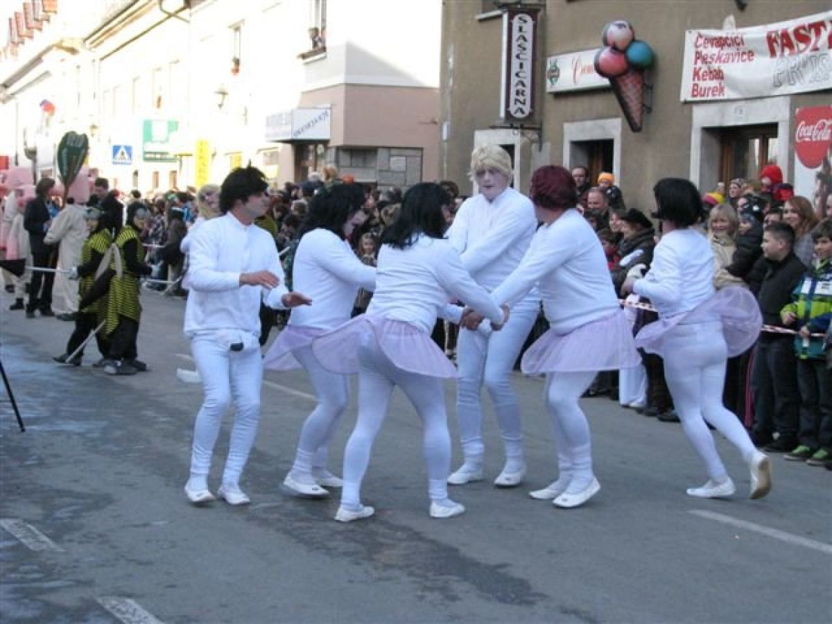 Pustna skupina Lipovec je vrtela pedala menda najdaljšega kolesa na svetu. Najštevilčnejša je bila skupina Ribničanov, ki je uprizorila Kraljevino s tlačni, kmeti in graščino. Glavni je bil Levjesrčni, brez kraljice, a s služkinjo in pribežnico v eni osebi. Tudi tokrat ni manjkal burovž, značilna ribniška pustna maska, ki je korakala na začetku sprevoda, za njim sta nastopila moška s korbači, ki preganjata zimo, povorko pa so popestrili še malčki iz vrtca, mažoretke, godba na pihala itd.