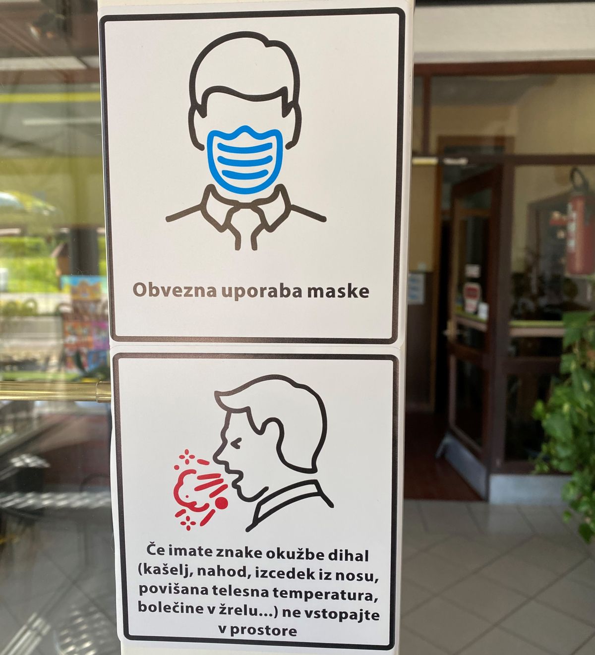 Vhodna vrata gostiln in gostinske terase so polepljene s kopico papirjev, na katerih se vrstijo priporočila, opozorila, prepovedi, navodila. Pri tem zgolj nalepke s sliko niso dovolj, ampak morajo biti napisi na več koncih, če po naključju še kdo na tem svetu po letu in pol ne ve, da imamo epidemijo novega koronavirusa. Mize postavljene na trimetrski razdalji, vsaj dvoje razkužil na štiri mize, da bodo gostje zares varni.