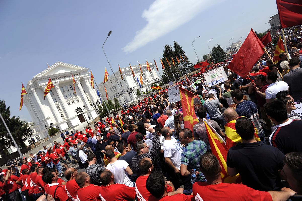 Pred zgradbo makedonskega parlamenta v središču Skopja se je danes na poziv vladajoče stranke VMRO-DPMNE zbralo že več deset tisoč podpornikov vlade premierja Nikole Gruevskega. Gre za odgovor na nedeljski množičen protivladni protest, na katerem so zahtevali odstop predsednika vlade.