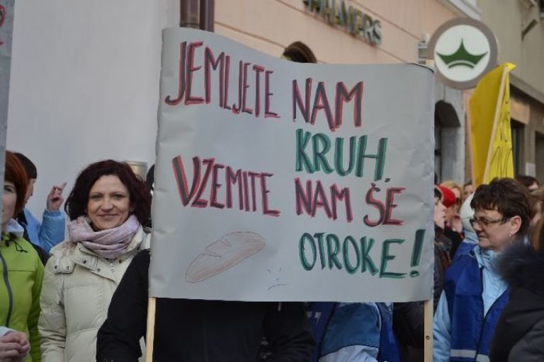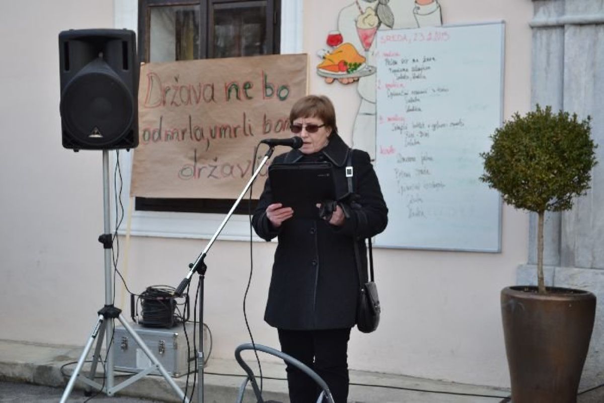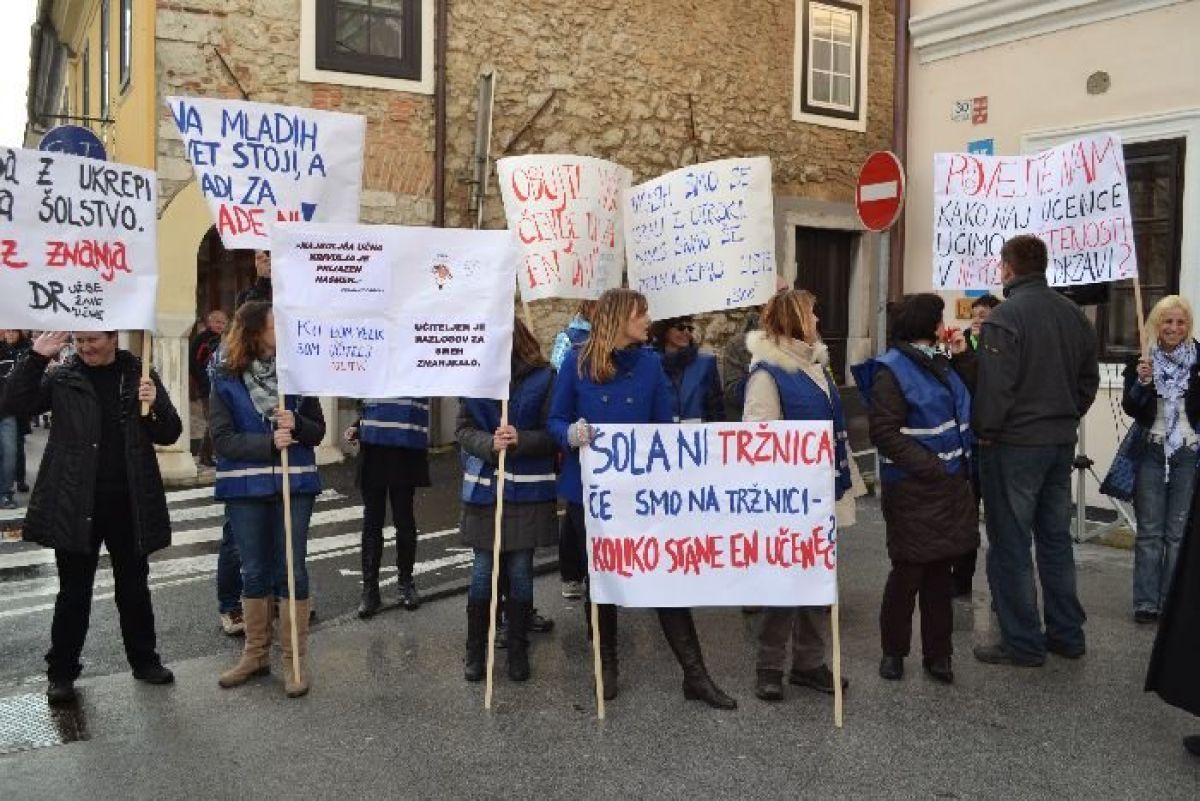 »Današnji shod je izraz stiske, ogorčenosti in želje po spremembi nevzdržnega stanja v vrtcih, šolstvu, znanosti in kulturi ter zdravstvu in drugih dejavnostih javnega sektorja, ključnih za dobrobit slovenskega naroda,« je dejala Andreja Grom, predsednica novomeške območne enote sindikata vzgoje, izobraževanja, znanosti in kulture ter dodala, da je bila stavka izglasovana z več kot 92-odstotno podporo, kar kaže na upravičenost zahtev. Na vseh plakatih, ki opozarjajo na stavko javnega sektorja, so zapisane štiri osnovne stavkovne zahteve. »Nezadovoljni smo, ker želimo braniti kakovost javnih storitev, zlasti izobraževanja, znanosti in kulture ter zdravstva; ker nas ne priznavajo kot enakopravnih pogajalcev in ne moremo dostojno sodelovati pri pogajanjih o ceni in pogojih dela; ker želimo ohraniti delovna mesta in ker želimo, da bi vlada spoštovala pogodbe, ki jih je pri polni zavesti podpisala in jih sedaj krši.« Gromova je dejala, da se zavedajo, da je potrebno varčevati, saj v šolstvu varčujejo že od nekdaj, pregovor pa pravi, da kdor poceni kupuje, drago plačuje.