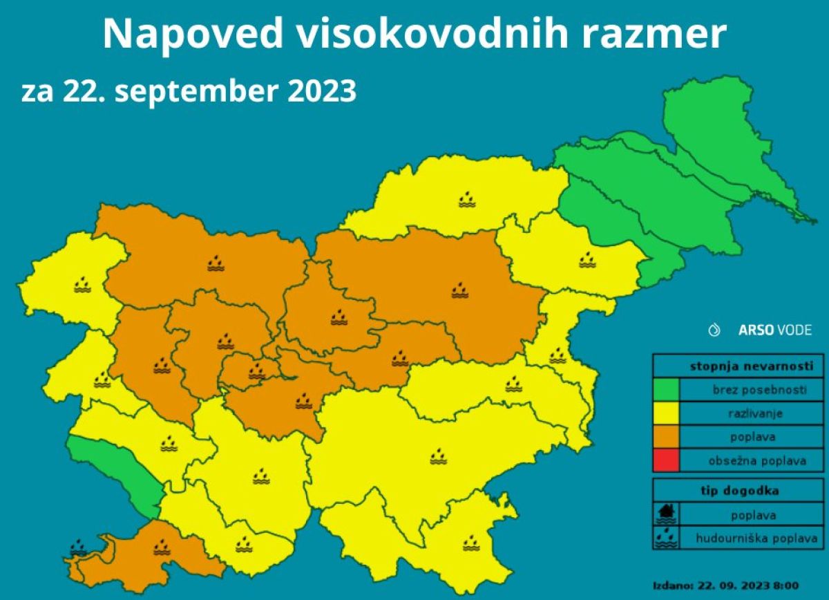 Pri Arsu glede na dogajanje opozarjajo tudi na možnost hudourniških poplav. Ob okrepitvi padavin se lahko razlijejo in poplavijo posamezni hudourniški vodotoki in manjše reke. Poplavi lahko tudi padavinska in zaledna voda. Hitro naraščanje vodotokov je možno tudi na nekaterih območjih, kjer so odtočne razmere po avgustovski ujmi spremenjene. »Večja verjetnost za ta pojav je na območju Gorenjske in Cerkljanskega ter Škofjeloškega hribovja,« so dodali.