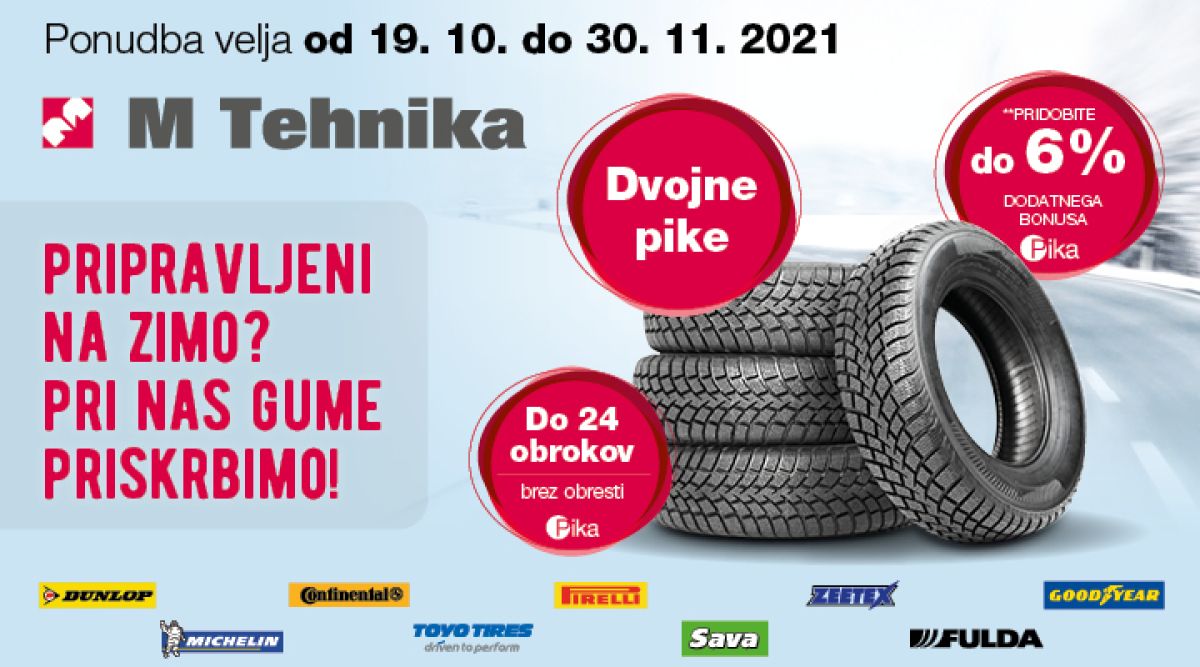 Ker pa je vreme zelo spremenljivo in nepredvidljivo, vam toplo priporočamo, da za svojega jeklenega konjička čimprej priskrbite zimsko obutev in to že oktobra. Obiščite poslovalnice M Tehnika ter se prepričajte o ugodni ponudbi.