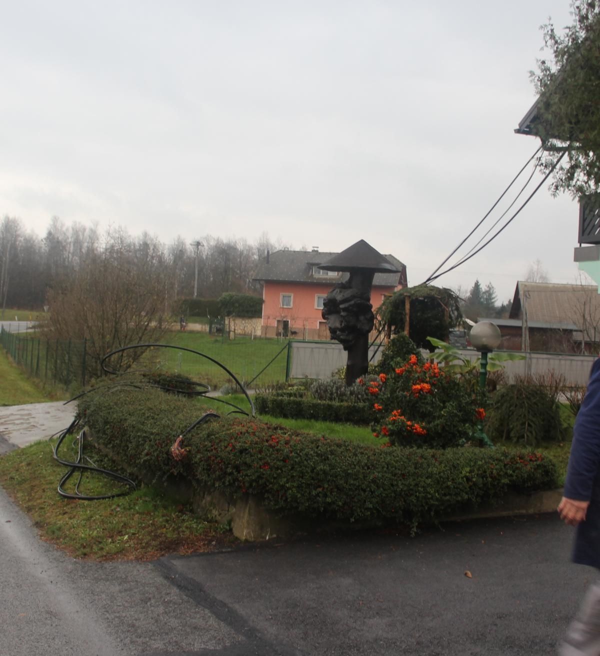 Ker je bila roka dvigala raztegnjena, se je zapletla v električne in telekomunikacijske kable. Voznik je peljal dalje, kable potrgal, pri tem pa poškodoval še strehi dveh stanovanjskih hiš in polomil veje