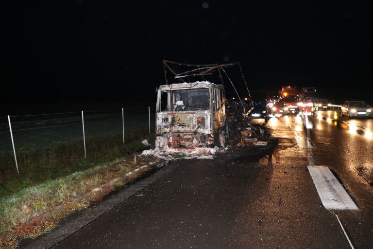 Madžarsko tovorno vozilo je prevažalo elektronsko naprave in je povsem pogorelo. Škode na vozilu je 10 tisoč evrov, na tovoru pa škoda še ni znana.
