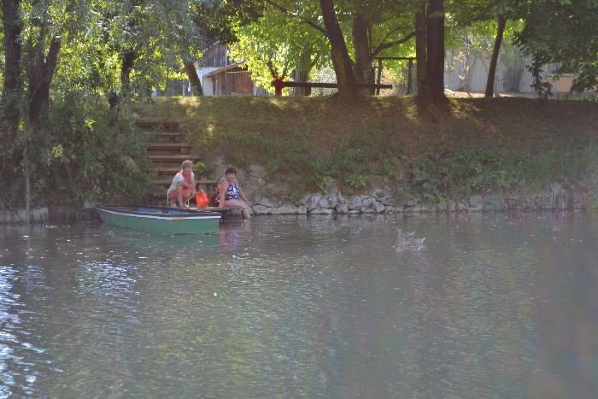 V dneh, ko se je temperatura zraka tudi v naših krajih ponekod povzpela celo do 38 stopinj Celzija, se segrevajo tudi naše reke. Včeraj popoldne smo v Kostanjevici na Krki izmerili kar 27 stopinj, tako da niti najbolj 'zmrznjenih' v vodi ni zeblo. Prav nasprotno - niti namakanje v reki prave osvežitve ne nudi. A kljub temu so po osvežitev v Kostanjevico prišli številni, ne le domačini, pač pa v dolenjske Benetke prihajajo tudi od drugod.