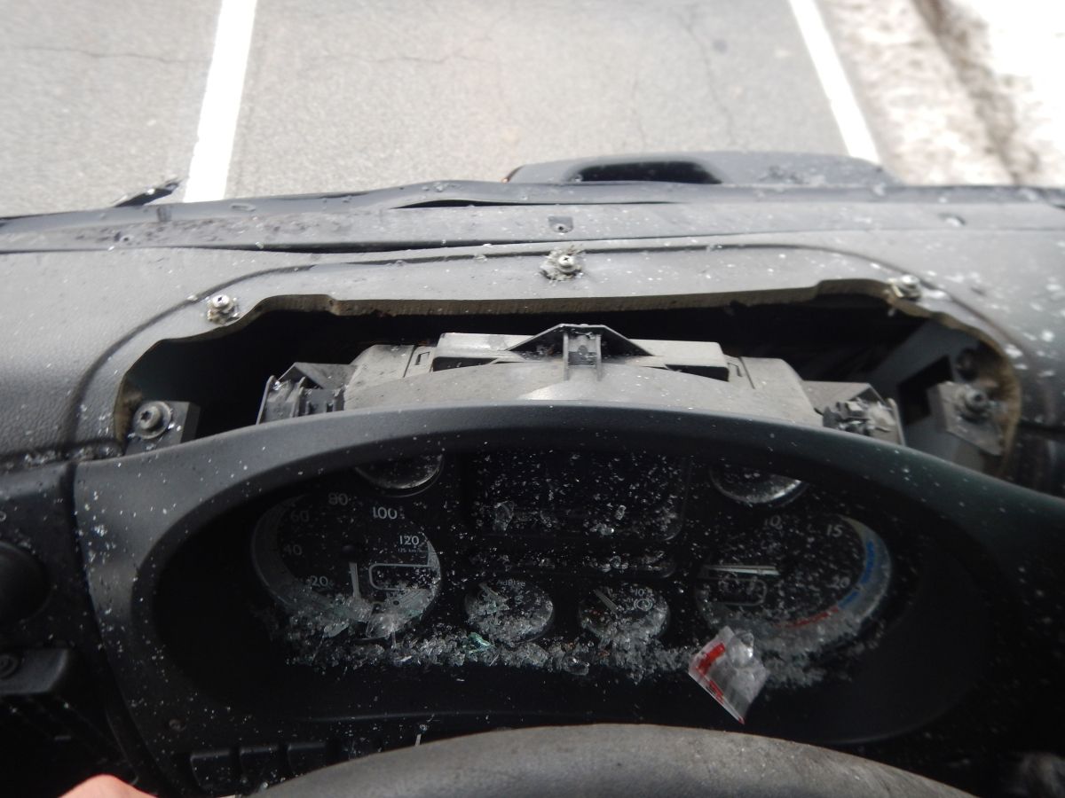 FOTO: Led je prebil steklo, delci pa so voznika porezali po glavi