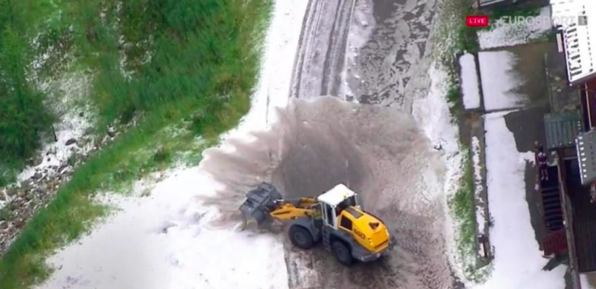 FOTO in VIDEO: Močna toča in zemeljski plaz mešala štrene na Dirki po Franciji