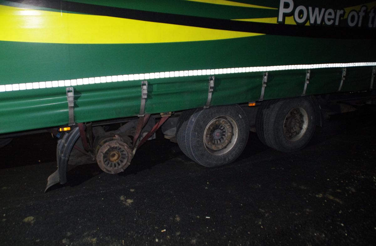Okoli 21. ure je nesrečni Romun policistom ustavil na avtocesti pri Arji vasi. Njegov tovornjak je bil ne le brez pnevmatike ampak celo brez platišča na desni strani priklopnika.