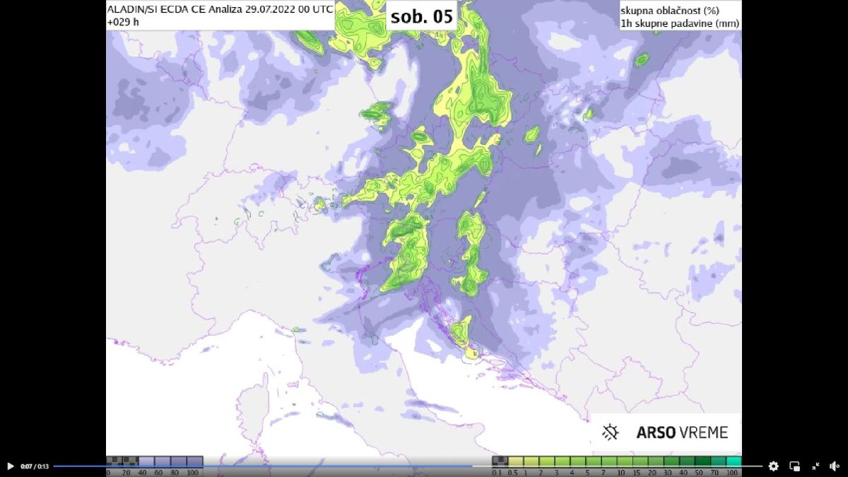 Danes popoldne in zvečer bodo v notranjosti države že nastale posamezne plohe in nevihte, v drugem delu noči na soboto pa bodo padavine z nevihtami od zahoda postopno zajele večji del Slovenije. Predvsem v Slovenski Istri bo ob nevihtah možen okrepljen veter zahodnih smeri.
