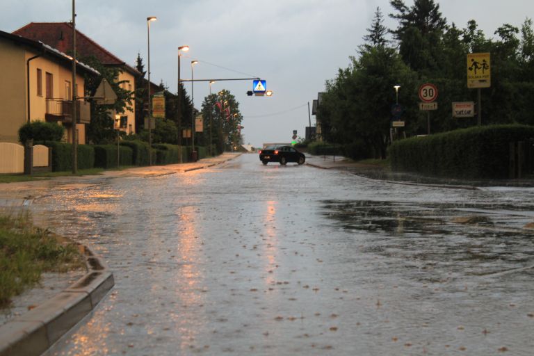 Neurja poleg toče prinašajo tudi večje količine padavin, zato so meteorne vode na več mestih poplavile. Večja količina padavin je padla na osrednjem delu Pomurja, na ravenskem, predvsem v Turnišču, Beltincih, Renkovcih, kjer je v dveh urah padlo kar 150 mililitrov dežja. "Tega infrastruktura enostavno ne more preneseti, zato je še vedno vse pod vodo. Gasilci črpajo vodo iz kleti po številnih krajih po Prekmurju," je sinoči razložil direktor Kmetijsko gozdarskega zavoda Murska Sobota Franc Režonja.