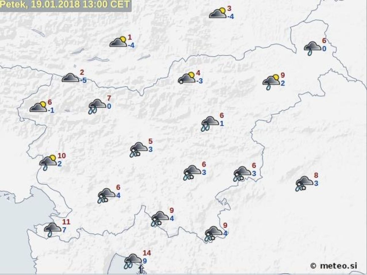 Preskočimo do noči na petek, ko se bo začelo bolj zanimivo vremensko dogajanje. Od zahoda se bo pooblačilo, čez dan pa bo začelo kapljati. Žal bo najprej po nižinah spet deževalo, meja sneženja pa se bo proti večeru spuščala. Največ snežink je tokrat pričakovati na Notranjskem, delih Dolenjske in v Beli krajini. Koliko? Lahko le za ščepec, lahko pa tudi do dvajset centimetrov.
