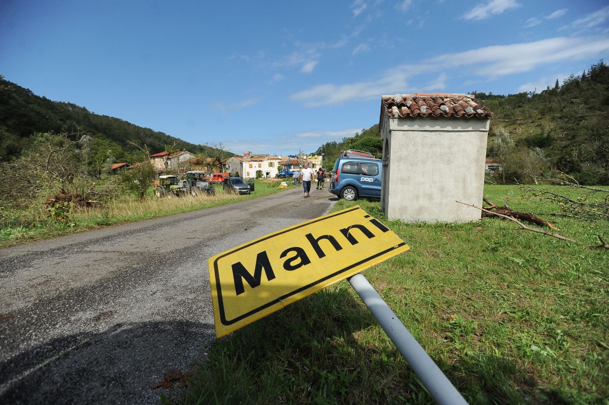 Podoba vasi Mahniči na Sežanskem, kjer je nočno neurje z znaki tornada odkrilo strehe deset stanovanjskih poslopij in prav toliko gospodarskih objektov, je bila zgodaj popoldan že drugačna. Domačini ob pomoči gasilcev in Slovenske vojske hitijo s prekrivanjem streh, škoda pa po prvih ocenah presega 200.000 evrov.