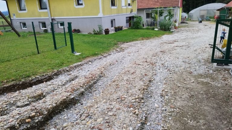 Minuli konec tedna je močno deževje povzročilo kar nekaj težav na Ormoškem. Meteorna voda je zalivala objekte, poplavljala dvorišča, veter je odkrival tudi strehe in podiral drevesa. Obilne padavine pa so tudi tokrat precej nevšečnosti povzročile Gašparičevim iz Podgorcev. »Ponoči, v kratkem času, je voda, ki se steka s hriba, preko ceste pridrla in poplavila dvorišče ter nato začela zalivati najprej kletne prostore stanovanjske hiše, nato pa enega izmed gospodarskih objektov, kjer imamo purane. Kasneje je odtekla naprej proti rastlinjakom in na travnike. Starša sta na pomoč poklicala gasilce, kajti pred garažnimi vrati kletnih prostorov stanovanjske hiše je voda segala že meter visoko. Vodo, ki je vdirala v kletne prostore, sta z metlami sproti usmerjala v odtočni jašek, da ta ne bi povsem poplavila kleti. Na srečo jima je uspelo preprečiti večjo škodo. Gasilci pa so črpali vodo iz kleti.« Voda je povsem razrila dvorišče.