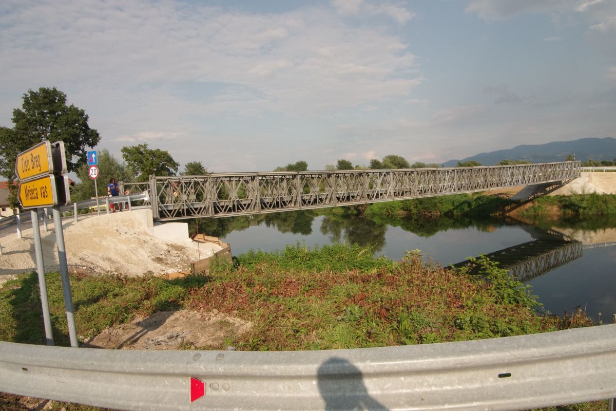 Nadomestni vojaški most ni plavajoč most kot pontonski, ampak klasičen. V petih dneh ga je postavila posebna inženirijska enota Slovenske vojske, sestavljena iz desetih do petnajstih za ta dela posebej specializiranih delavcev. Jekleno konstrukcijo, težko kar 88 ton, so najprej sestavili na tleh, na dvorišču bližnje hiše, nato pa so jo s pomočjo dvigala čisto počasi, dobesedno po milimetrih, potiskali z ene strani na drugo stran Krke. Seveda je bilo treba prej na obeh straneh primerno pripraviti teren in nasip, za kar je poskrbela občina. Kot je povedal vodja inženirijske enote, nadporočnik Jurij Gorenc, je takšen nadomestni most sedaj eden od osmih v Sloveniji, je pa najdaljši brez vmesnih podpornikov. Dolg je šestdeset metrov.