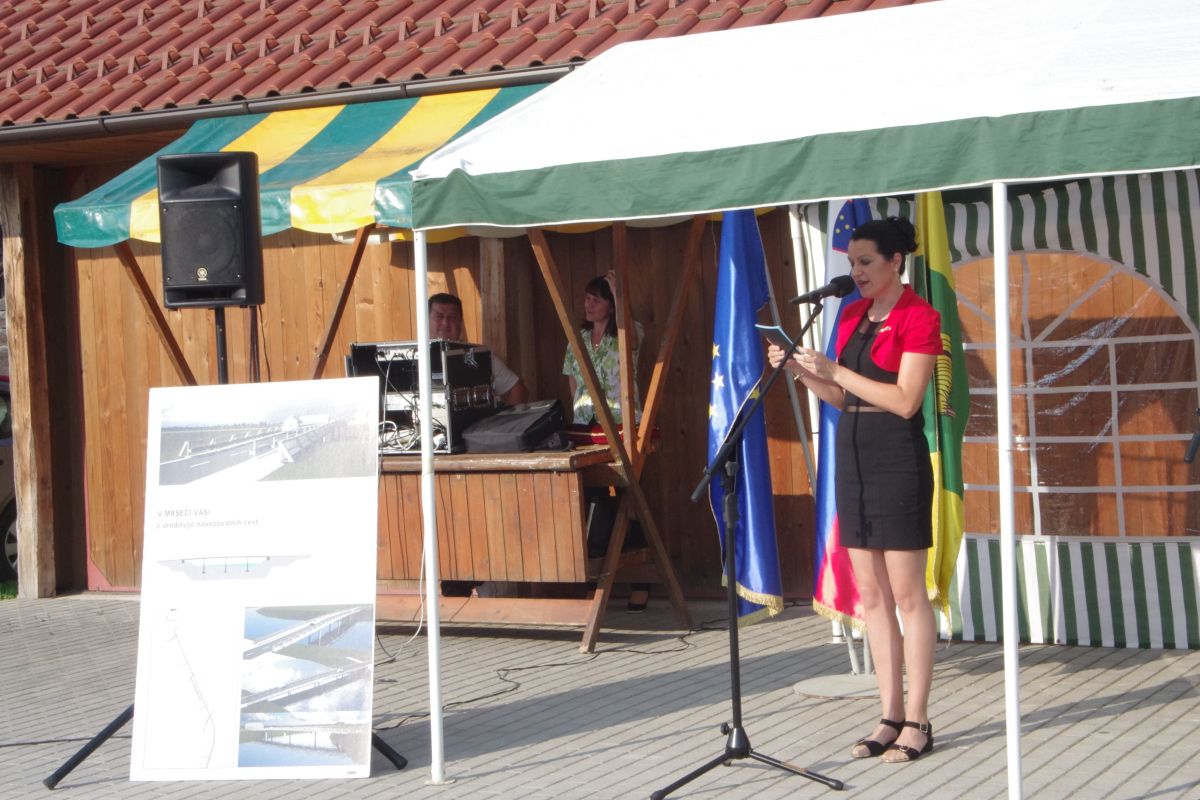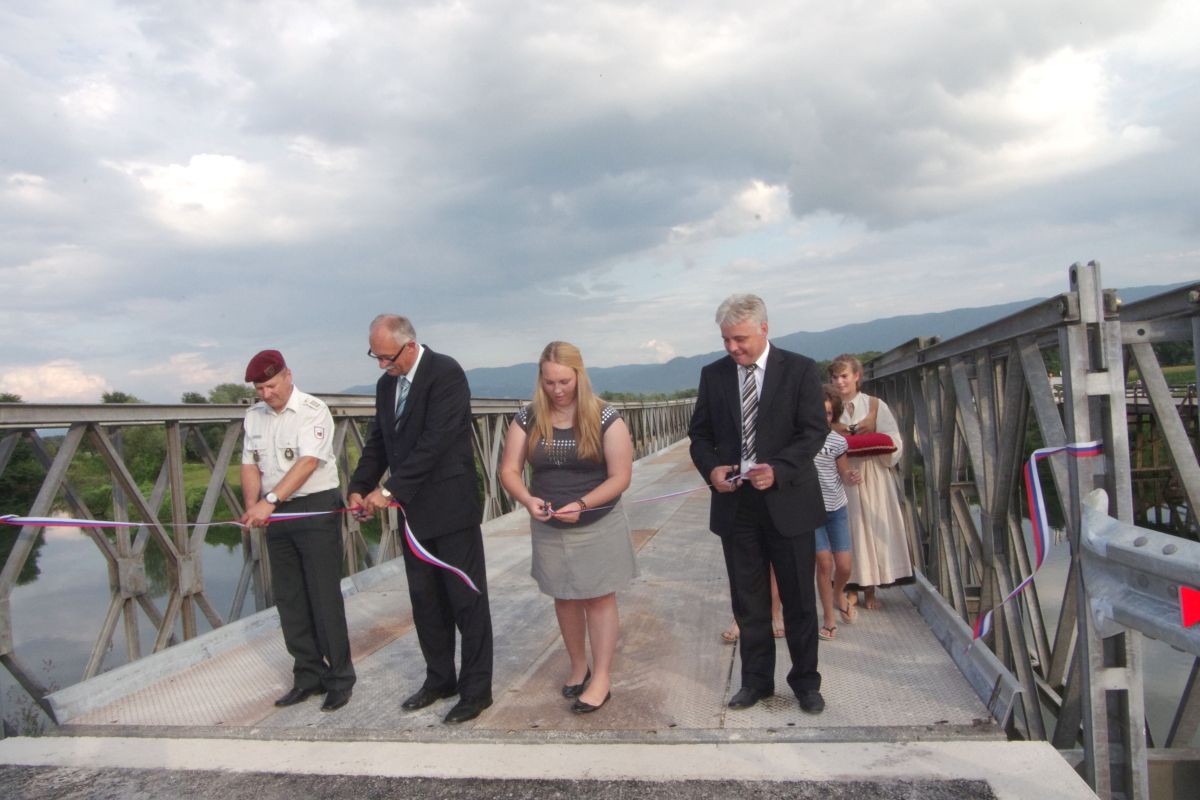 Slovesno otvoritev, ko so zadovoljni krajani pripravili kar vaški piknik, so popestrili pevci Šentjernejskega okteta, posebno pesem o mostu je spesnil ljudski pesnik Jože Grgovič. Trak so prerezali: župan Hudoklin, generalni direktor Ministrstva za obrambo Uprave za zaščito in reševanje Darko But, polkovnik Vojašnice Franca Uršiča iz Novega mesta Žarko Henigman ter Lucija Kosmač iz Mršeče vasi, ki se je vsem zaslužnim za nadomestni most zahvalila v imenu krajanov.