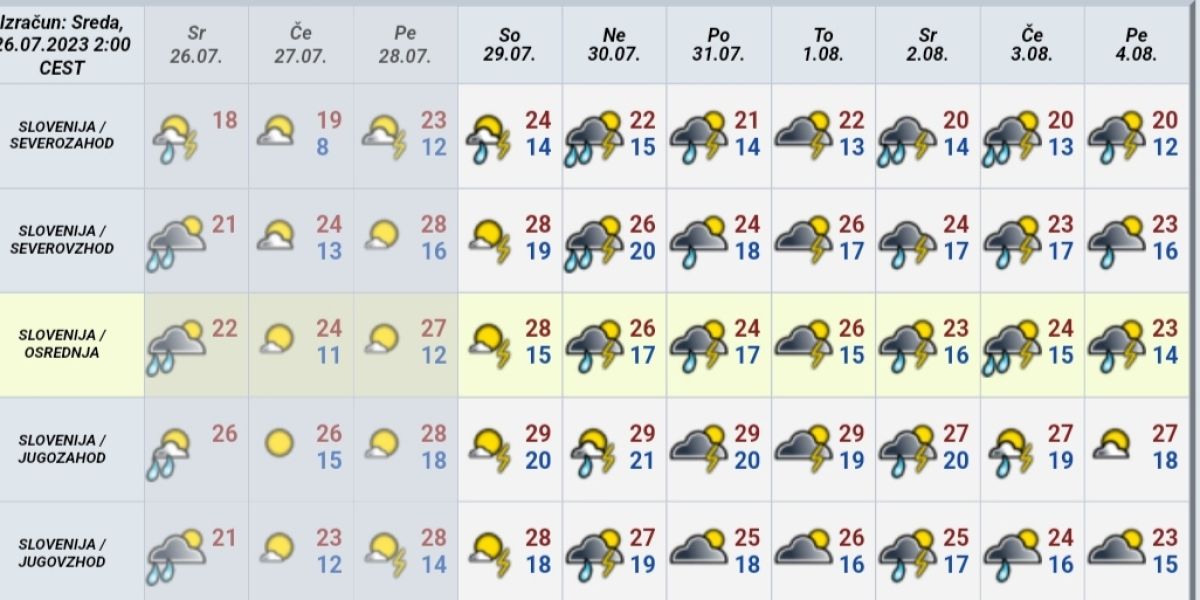 Sicer pa nas bodo danes še spremljale plohe ali nevihte. Za celo državo velja rumeno opozorilo.