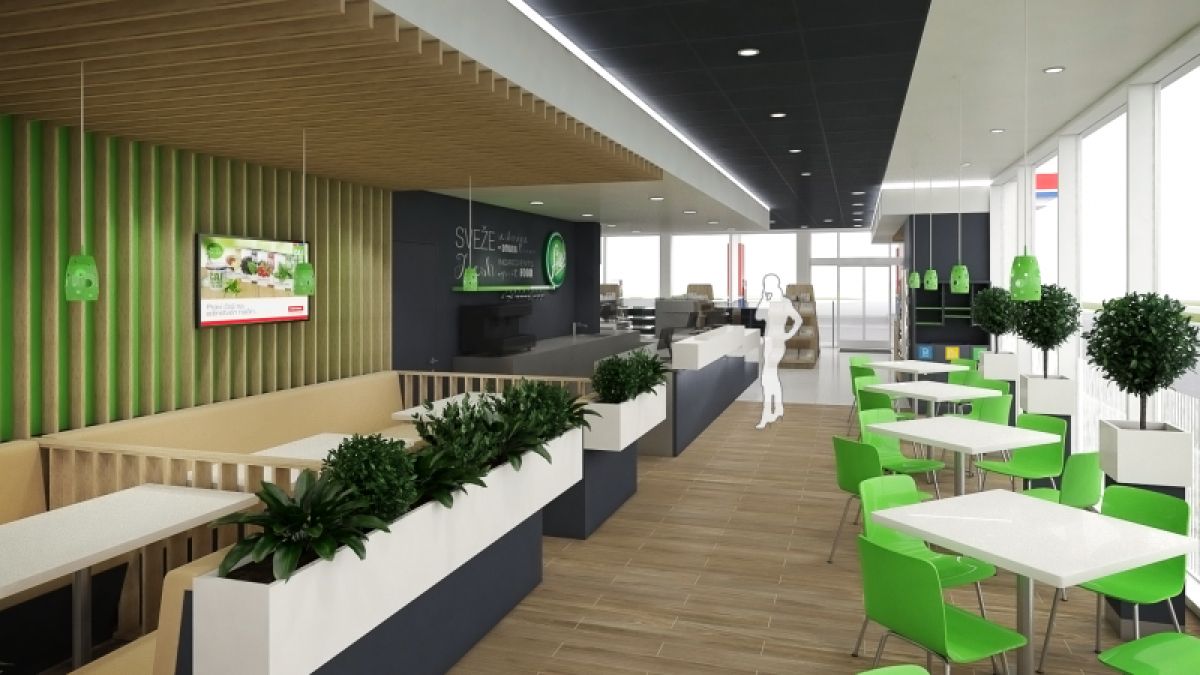 Okoli 500 kvadratnih metrov velika stavba bencinskega servisa na vzhodnem postajališču bo obsegala prodajalno s ponudbo dodatnega trgovskega blaga, vključno s prehrambnimi izdelki in ponudbo zdrave prehrane z veliko restavracijo koncepta Fresh z bifejem. V stavbi bodo še pomožni prostori bencinskega servisa in restavracije (pisarne, garderobe, sanitarije za osebje, skladišča itd.) ter javne sanitarije (tudi za invalide, poleg njih bodo uredili še previjalnico za dojenčke in umivalnico s prho). Stavba bo imela zunanjo pokrito teraso in otroško igrišče. Nočitvenih kapacitet, kot smo poročali že lani, ne bo.