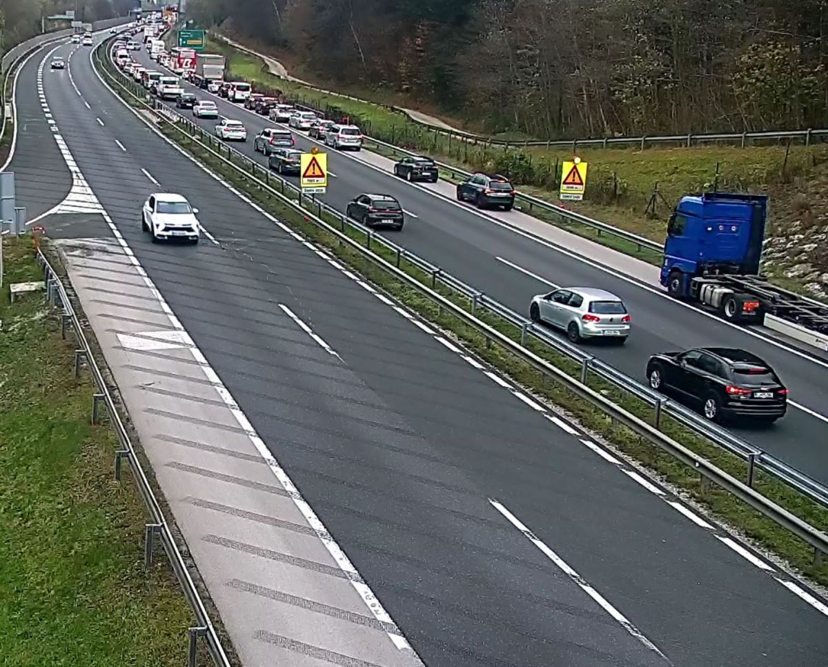 Tudi pred Slovensko Bistrico sever proti Ljubljani je delovna zapora, zaradi katere nastajajo 10- do 15-minutne zamude.