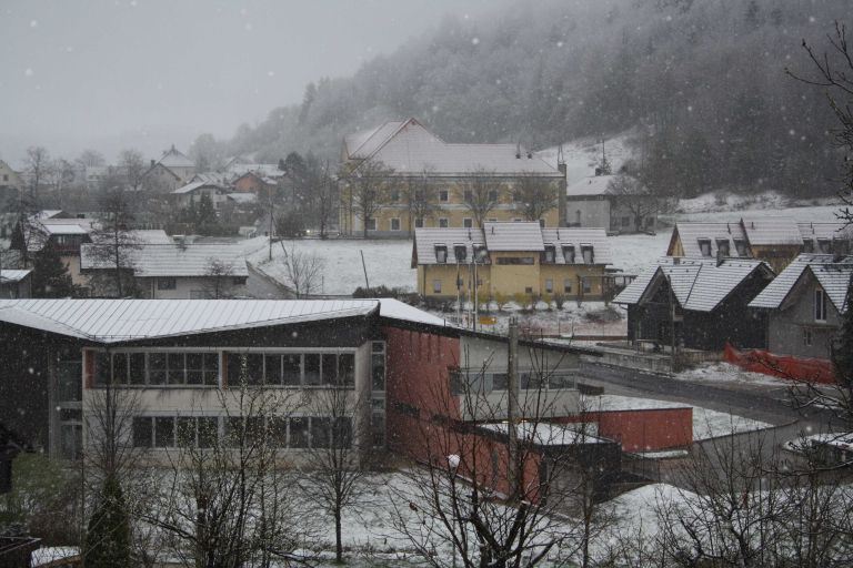 Potem, ko smo ob dvajsetih in več stopinjah že krepko vihali rokave ter gledali v nebo, kdaj bo nam in suhi zemlji vendarle namenilo kakšno kapljo dežja, smo se danes prebudili v hladno, tudi deževno jutro, okoliški hribi pa so marsikje - beli! Snežinke so med drugim presenetile prebivalce Brezove Rebri pri Dvoru, kot rečeno, je bilo tako še marsikje drugod, tudi v Višnji Gori, od koder prihajajo pričujoče jutranje fotografije.