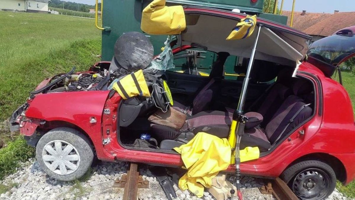 Na nezavarovanem prehodu čez železniško progo v naselju Hrastje Mota v občini Radenci sta dopoldne okoli 10. ure trčila tovorni vlak in osebno vozilo.