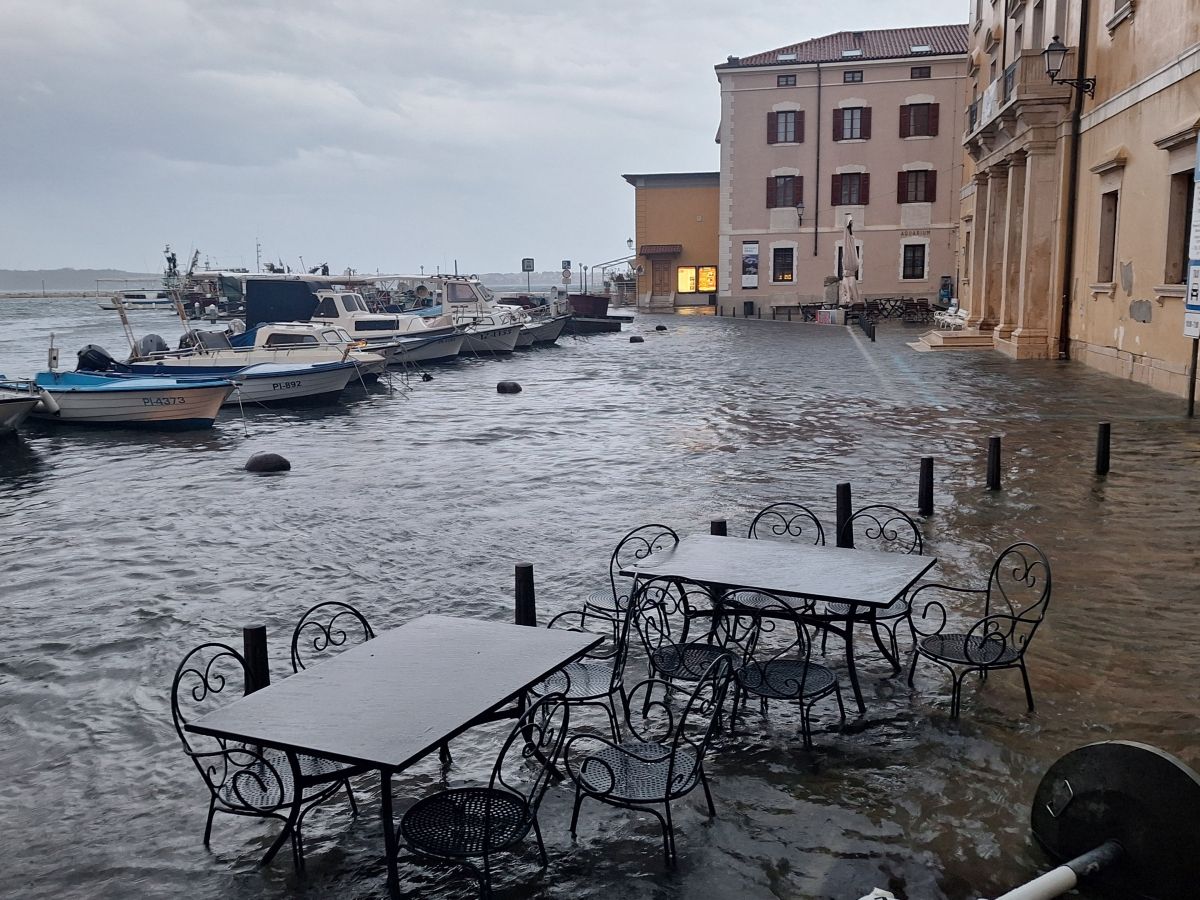 V Piranu je morje zjutraj prestopilo rob obalne črte in zalilo Prešernovo in Kidričevo nabrežje ter Tartinijev trg in Punto. Opozorilo za nevarnost naraščanja morja so sprožili tudi v Izoli, zaradi visokega plimovanja morja in južnega vetra pa je morje prestopilo rob obalne črte tudi v Kopru in zalilo semedelsko promenado.