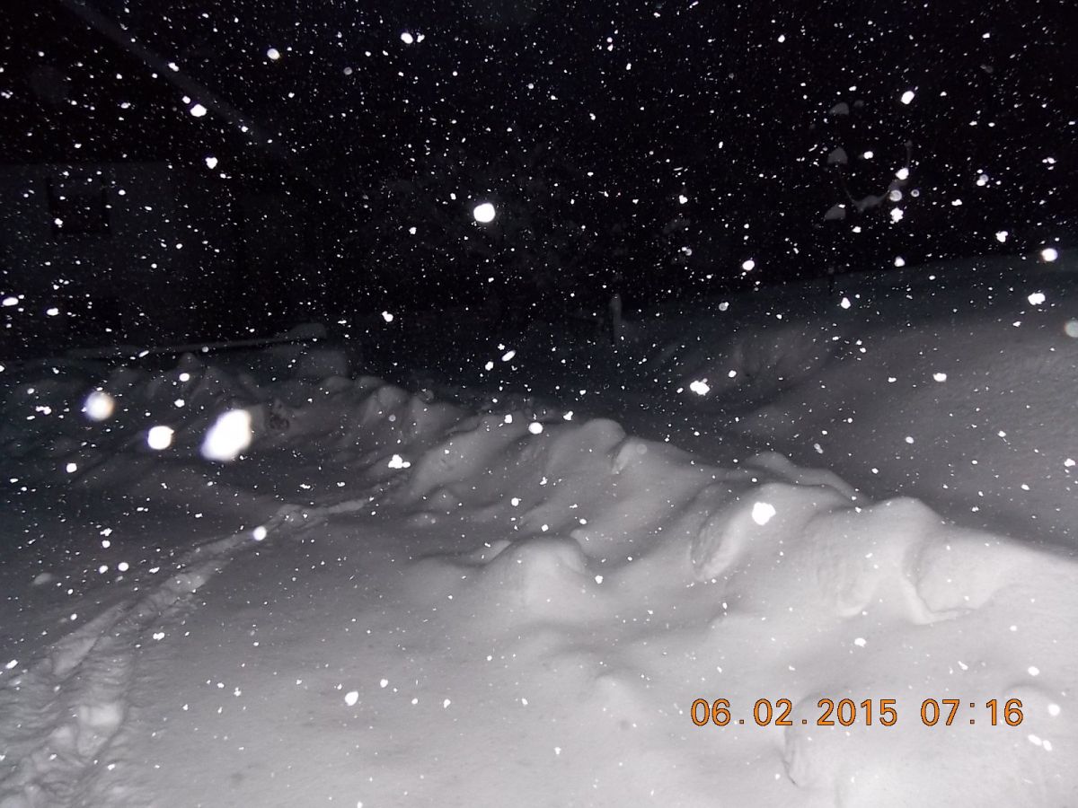 Živimo na Ratežu, čakam na pluženje, če bo, sneži še naprej in dela zamete ... Pluženo je bilo nekje okoli četrte ure zjutraj. Dostop do naše hiše ni bil splužen, ampak so dovoz celo zaplužili, tako da sva s sinom ostala doma. Snega je čez kolena. Po urgentem klicarjenju mi je obljubljeno, da pridejo nazaj in mi odplužijo ...