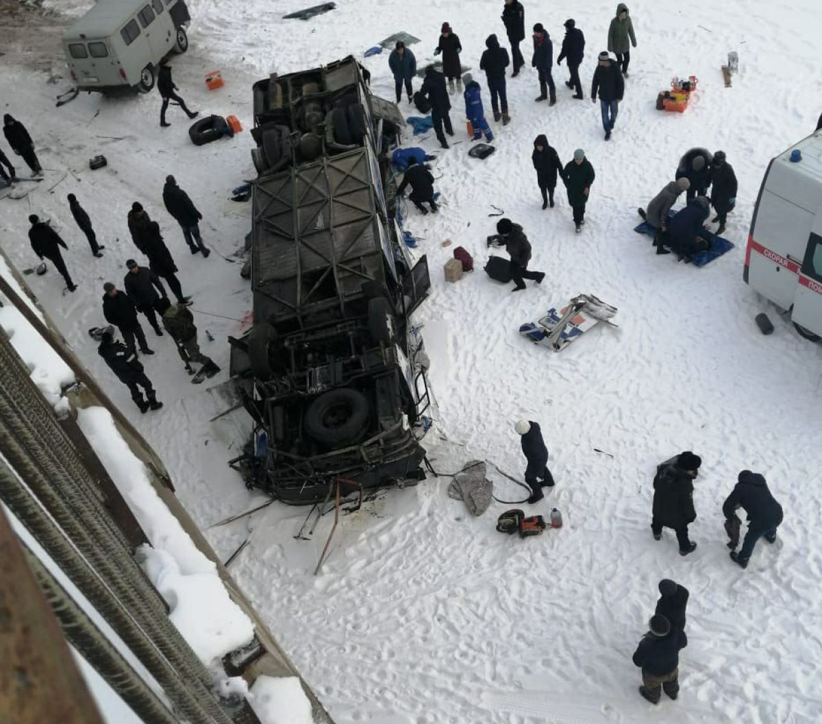 VIDEO in FOTO: Avtobus z mostu zgrmel v ledeno reko, umrlo najmanj 19 ljudi