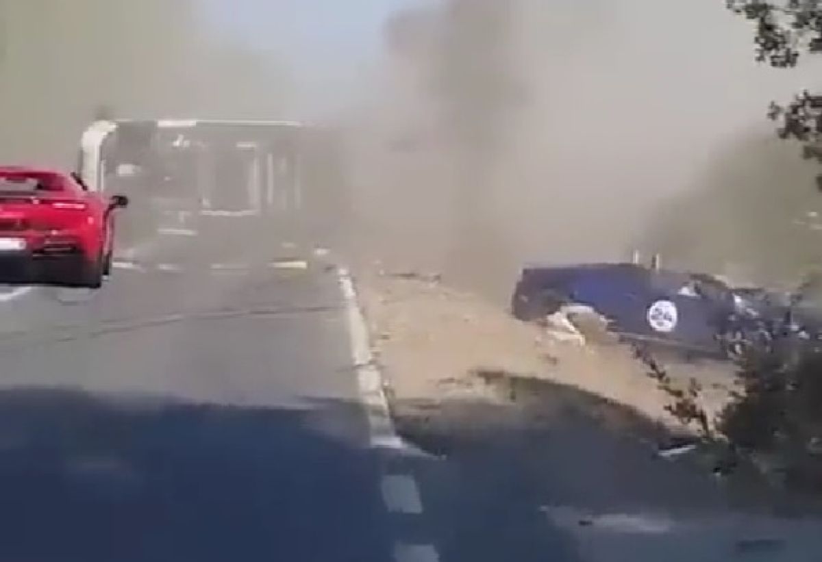 Video: Bogata švicarska turista po objestnem prehitevanju zgorela v najetem Ferrariju