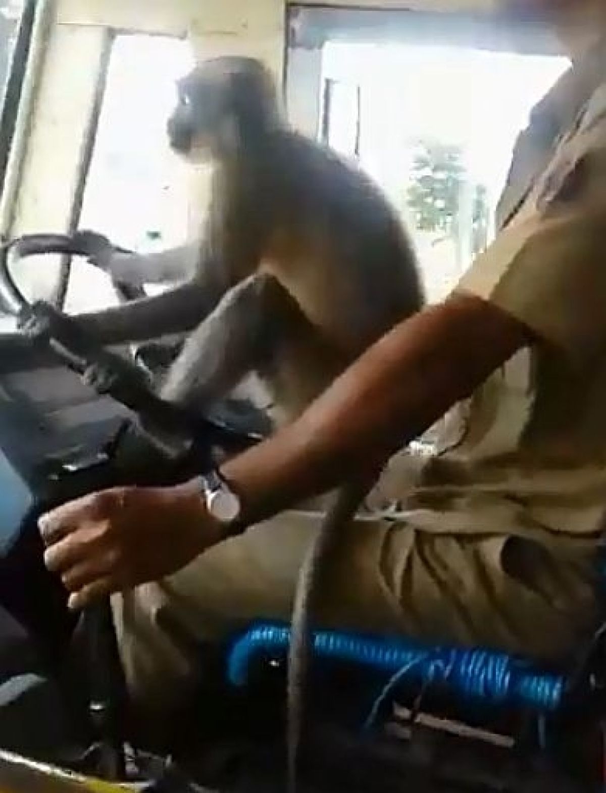 Nek potnik je v Davanagereju vstopil na avtobus, s seboj pa je imel opico vrste langur. Opica je menda zahtevala, da sedi ob vozniku avtobusa, ta pa ji je dovolil, da sede kar na volan in prevzeme nadzor nad vožnjo.