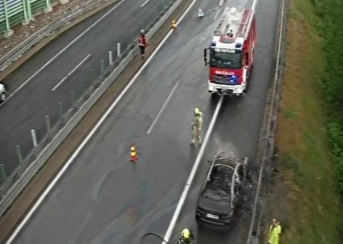Vipavsko hitro cesto ohromilo goreče vozilo