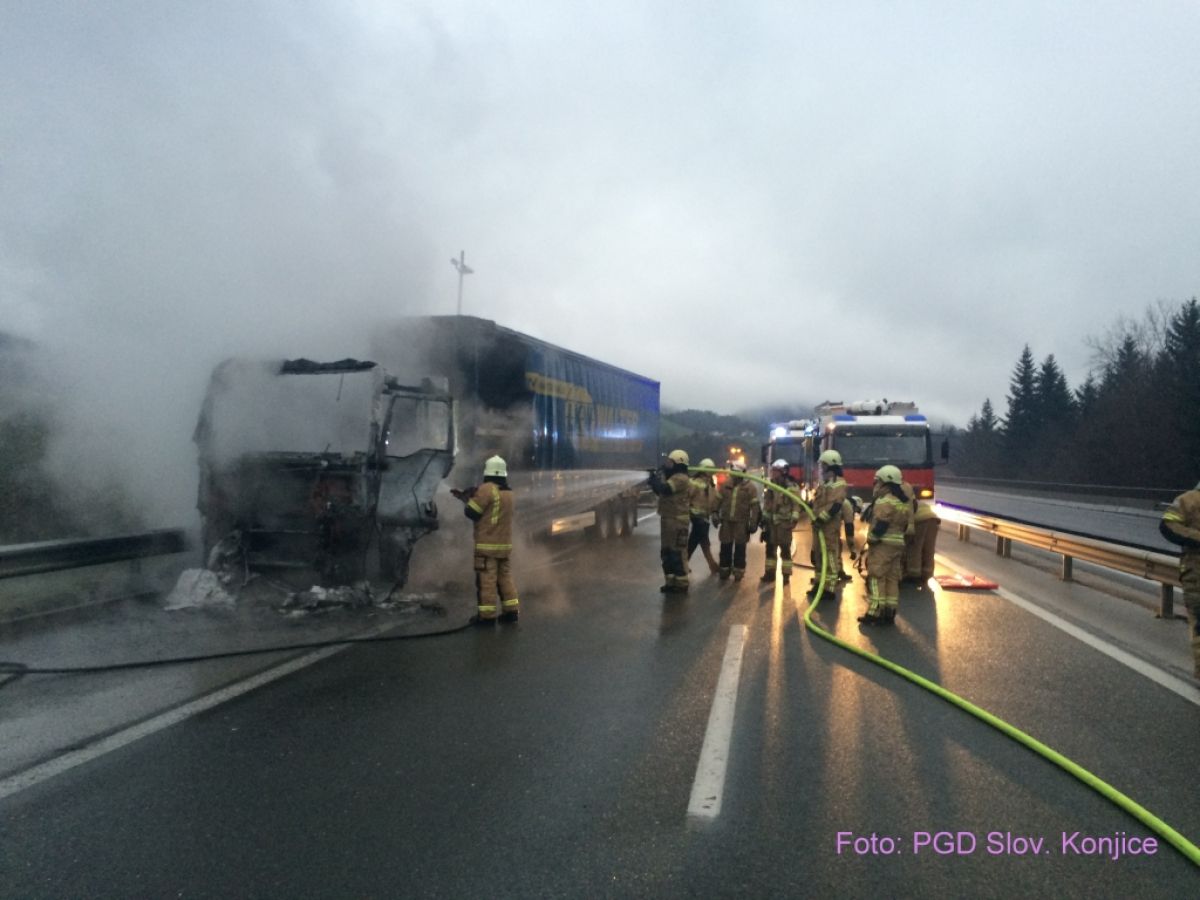 Voznik se je uspel pravočasno rešiti in v požaru ni bil poškodovan. Po prvih ocenah znaša škoda okoli 25.000 evrov.