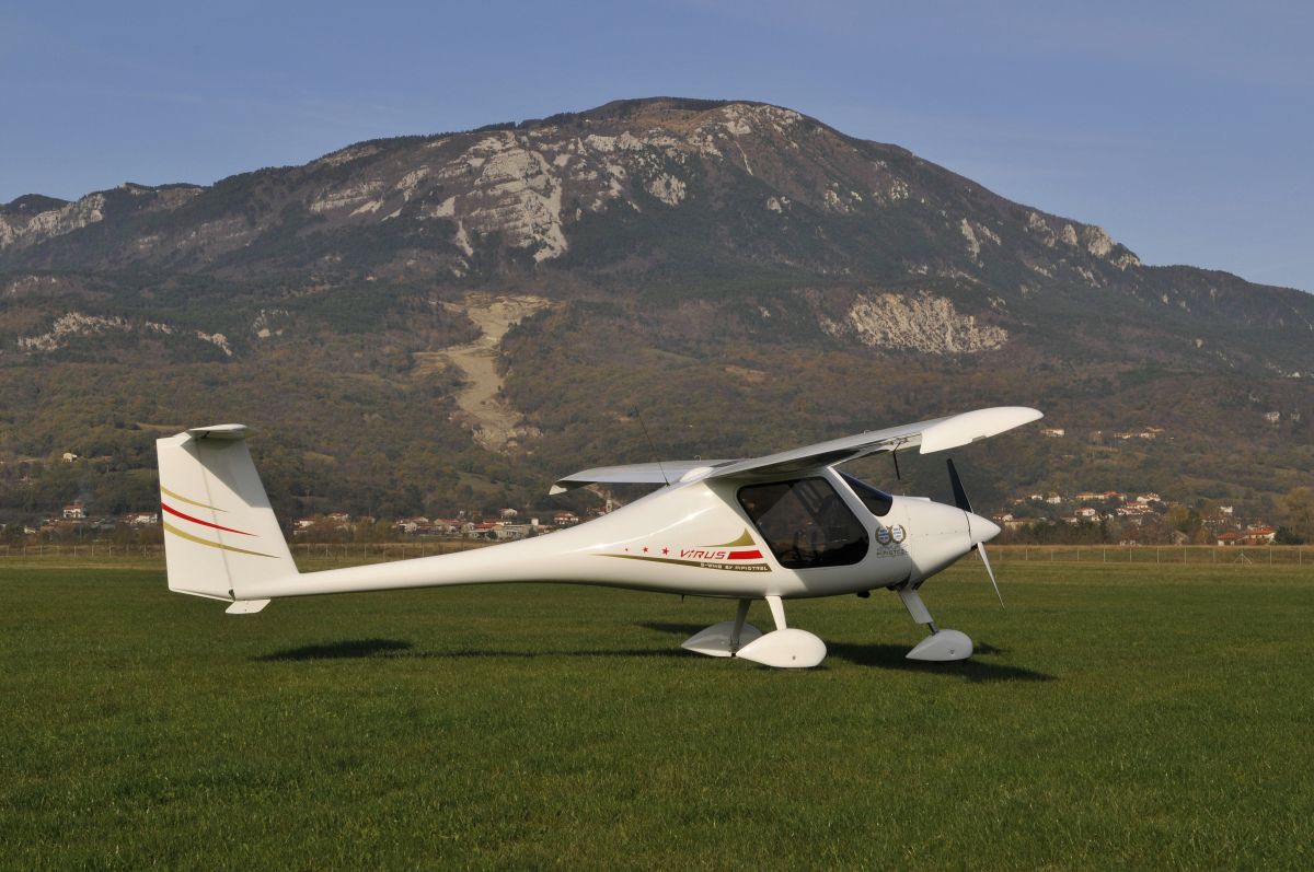 V soboto je na travniku ob bovški obvoznici nekaj sto metrov od naseljenih objektov zasilno pristalo dvosedežno ultralahko letalo znamke Pipistrel virus.
