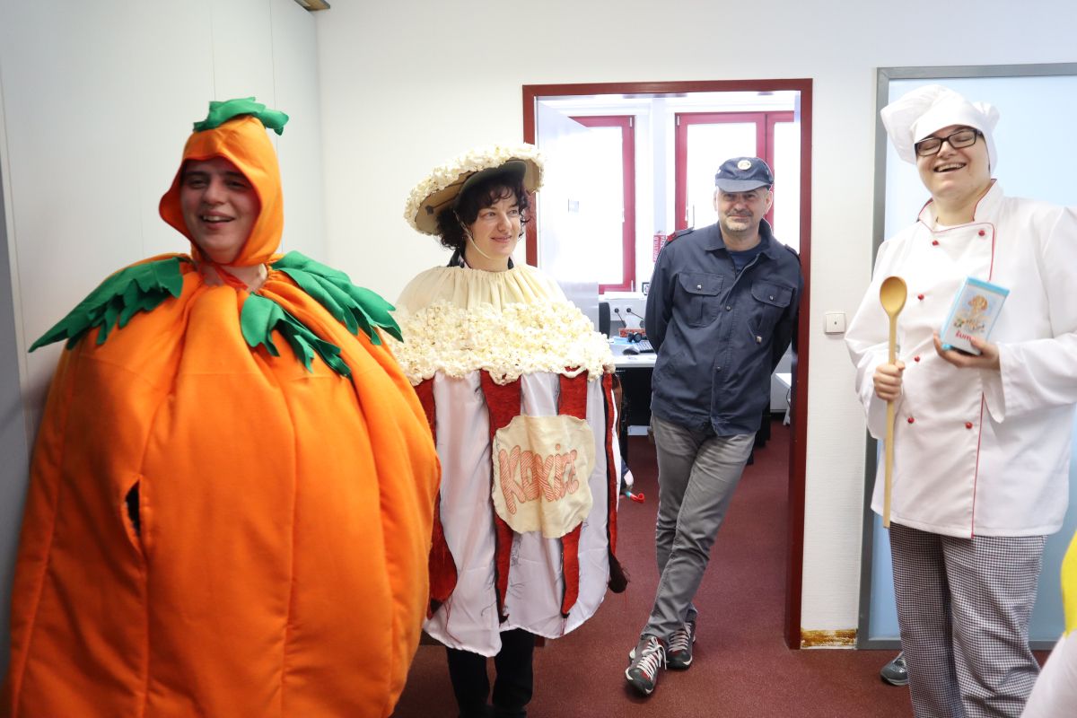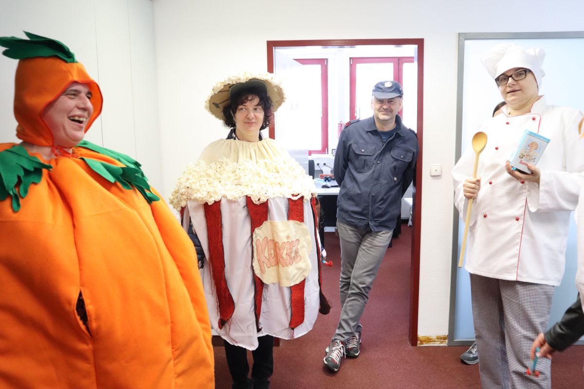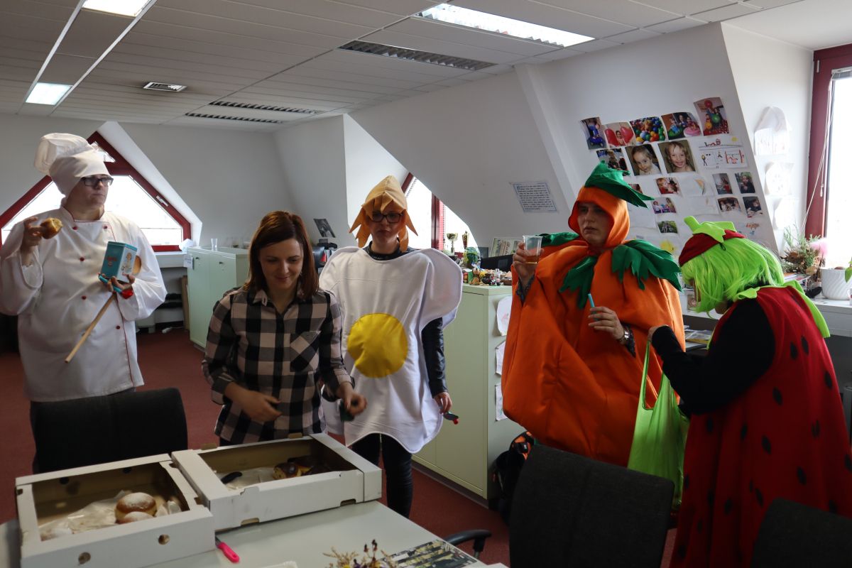 Tudi Žuto kučo in tretje nadstropje, kjer ustvarjamo Vestnik ter vestnik.si, so obiskale pustne šeme.