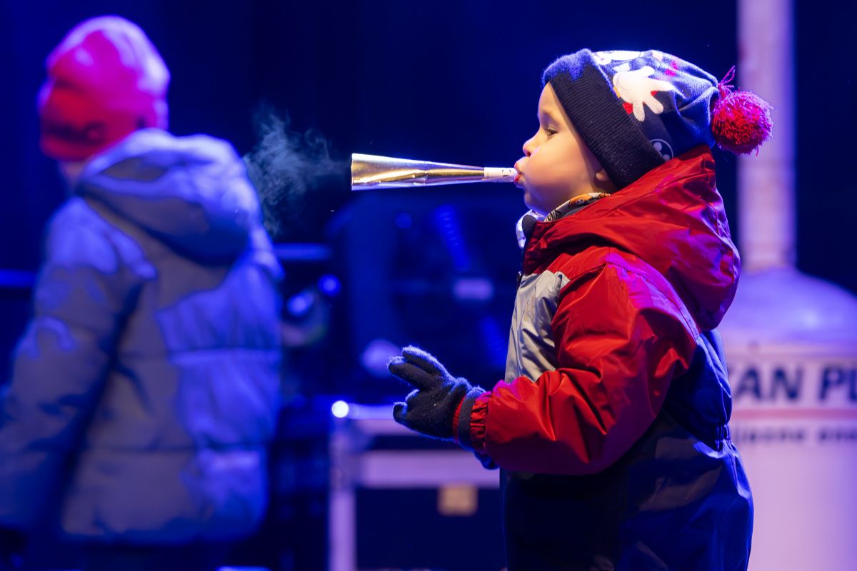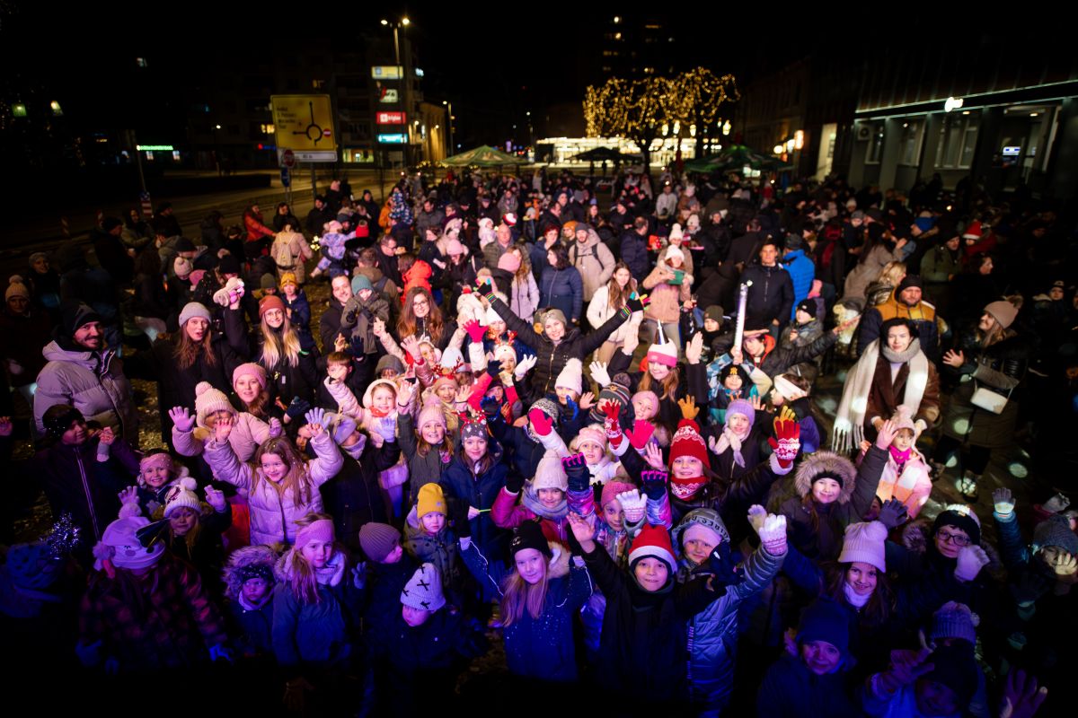 Najmlajši so na Trgu zmage ob glasbi, igri in odštevanju dočakali simbolični prihod novega leta.
