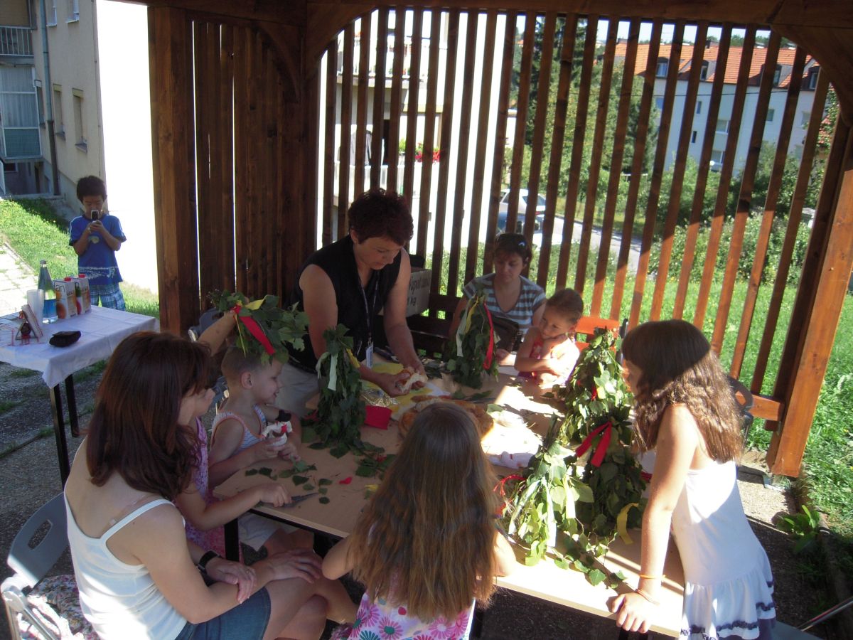 Na zelenici pred Knjižnico Mirana Jarca Novo mesto je v četrtek potekal dopoldan v znamenju Bele krajine. Otroci so poslušali belokranjske zgodbe, si ogledali nekaj značilnih predmetov te pokrajine, iz brezovih vejic so si izdelali košek Zelenega Jurija in se po napornem delu okrepčali z belokranjsko pogačo. Projekt sofinancira Mestna občina Novo mesto v sklopu oživitve starega mestnega jedra.