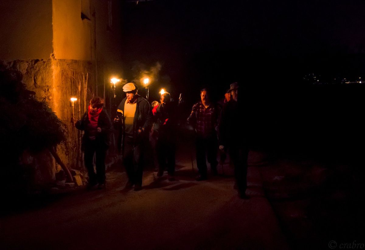 Ob 18.30 uri je četica odkorakala po Vrhovčevi in Jerebovi ulici, preko Ragovskega mostu in Ragovega loga do Ločne, kjer se je pridružilo še pet pohodnikov. Nadaljevali smo pot proti Bajnofu, kjer so se pridružili še štirje. Do tam se je že tudi stemnilo in prižgali smo bakle in druge svetilke. V prijetnem klepetu in pogledih na že osvetljeno Novo mesto smo se kar hitro povzpeli skoraj do cilja, kjer sta nas prijazno pogostil predsednikov prijatelj s soprogo. Hvaležni za gostoljubje smo se poslovili in odkorakali do cerkve. Pred cerkvijo smo se okrepčali z »županovimi sendviči«, ki jih letos prvič ni bilo??. Prijazni cerkovnik nam je odprl tudi cerkev in na kratko predstavil njeno zgodovino.