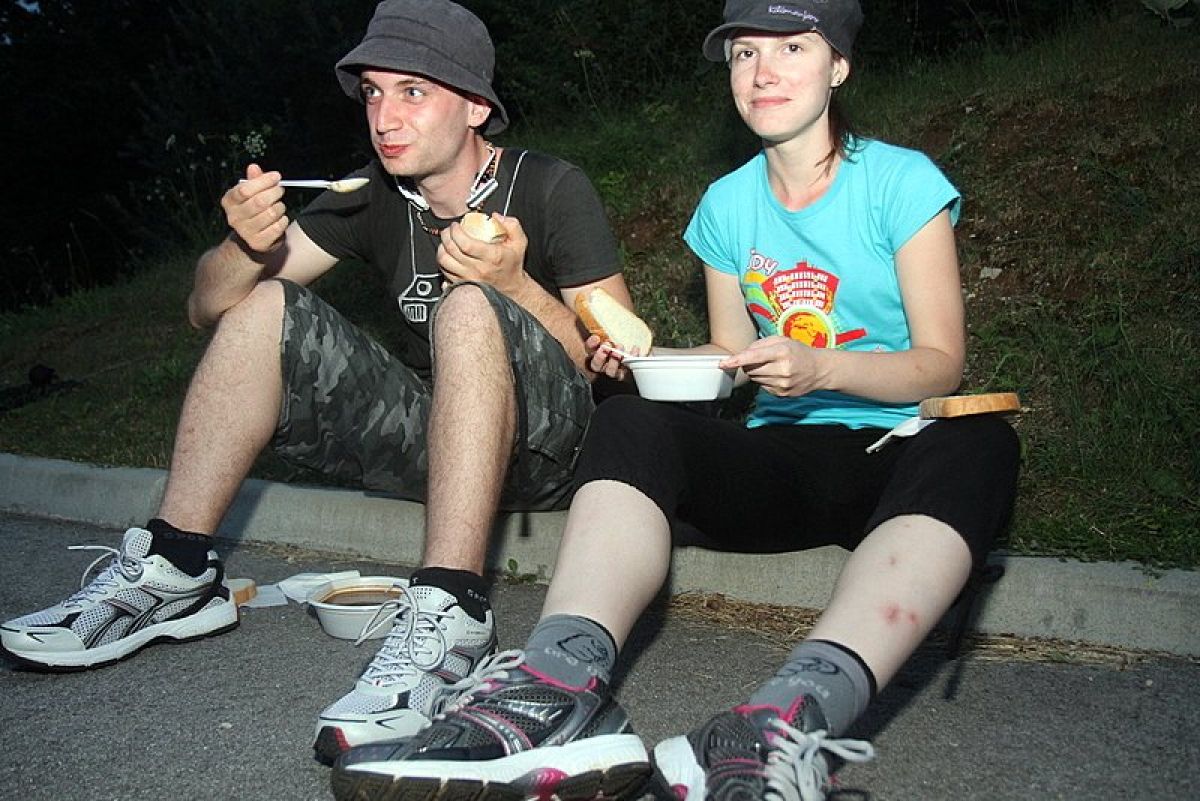 Na včerajšnjem cilju v Šmihelu jih je pričakal tudi žužemberški župan Franc Škufca s sodelavcem, jih nagovoril ter izrekel nekaj vzpodbudnih besed za današnji zadnji štart. Vse skupaj pa je na koncu povabil še na večerjo, vsem pohodnikom in spremljevalcem so Suhokranjci ponudili odličen golaž ...