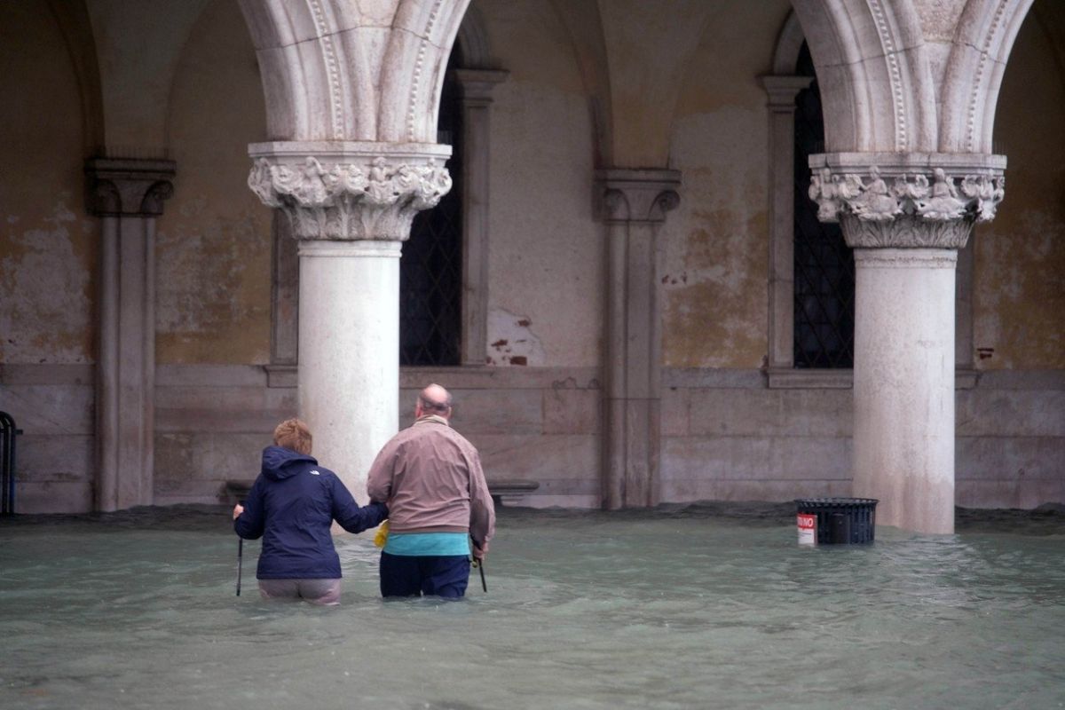 V Benetkah so v ponedeljek šestič v zgodovini zabeležili visoko vodo oz. "acqua alta" višjo od 1,5 metra.