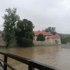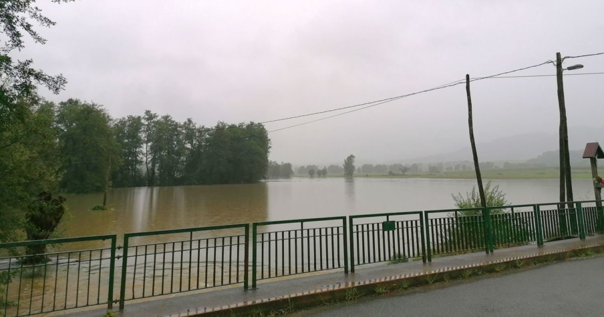 Še marsikje drugod po naših krajih je danes pogled na pokrajino prav žalosten. Voda je narasla marsikje do cest, prekrila je travnike in polja. Pri marsikateri hiši je bilo opaziti vreče peske za zaščito.