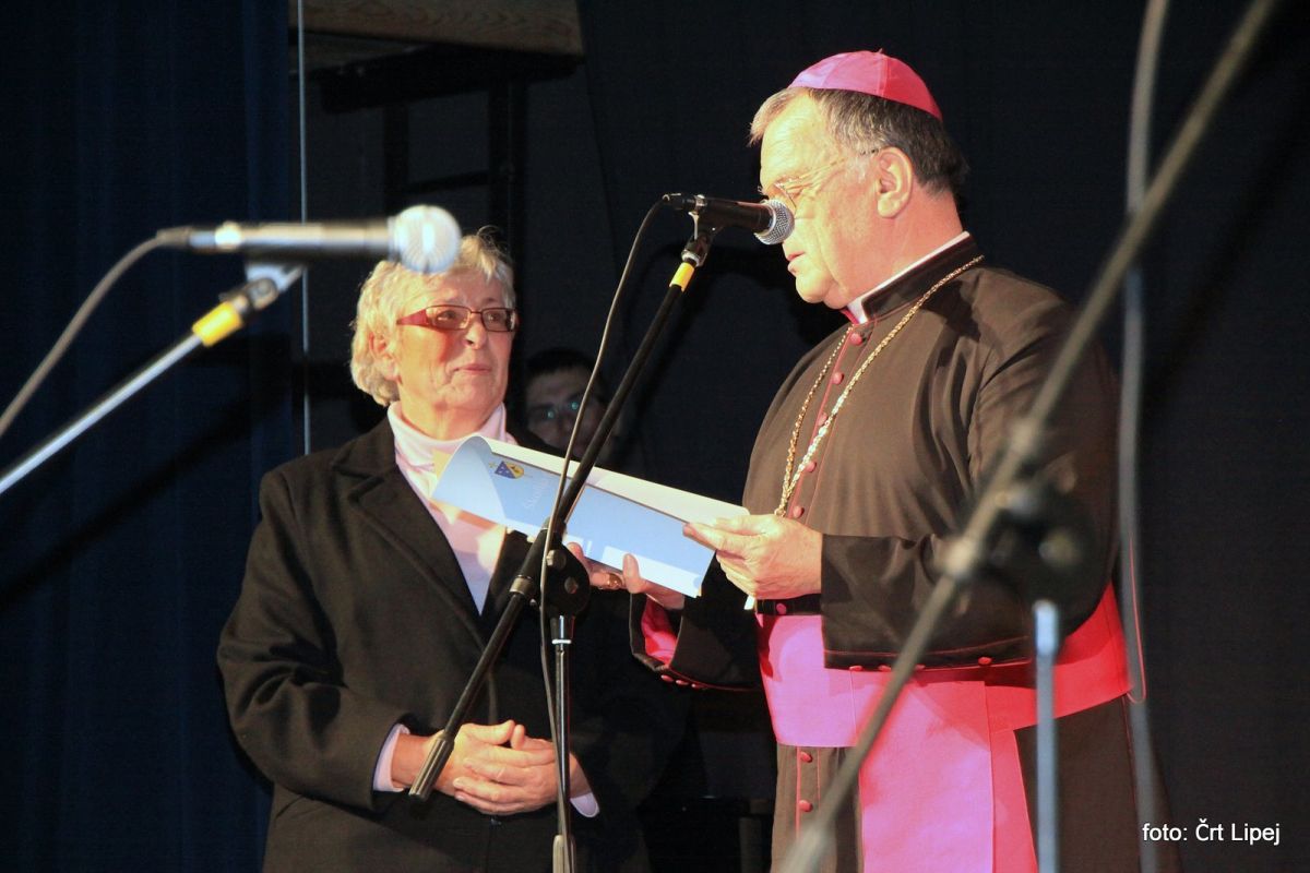 Osrednji govornik zbranim je bil celjski škof Stanislav Lipovšek, ki je izrazil posebno hvaležnost vsem članom brežiške Karitas, to je skupina 16 prostovoljcev. Voditeljici Zinki Žnideršič se je zahvalil še posebej s plaketo celjske škofije za vsa dobra dela, ki jih je vložila v delo Karitas v minulih dveh desetletjih. Škof je še posebej poudaril,da ga veseli velik odziv ne le na koncertu, ampak tudi drugače do delovanja te dobrodelne organizacije. Kljub težkemu času se še najdejo ljudje, ki so pripravljeni pomagati drugim ljudem v stiski. Tudi na sinočnjem koncertu so zbali preko 1700 evrov, ki jih bodo še kako potrebovali za blaženje različnih socialnih stisk prosilcev pomoči.