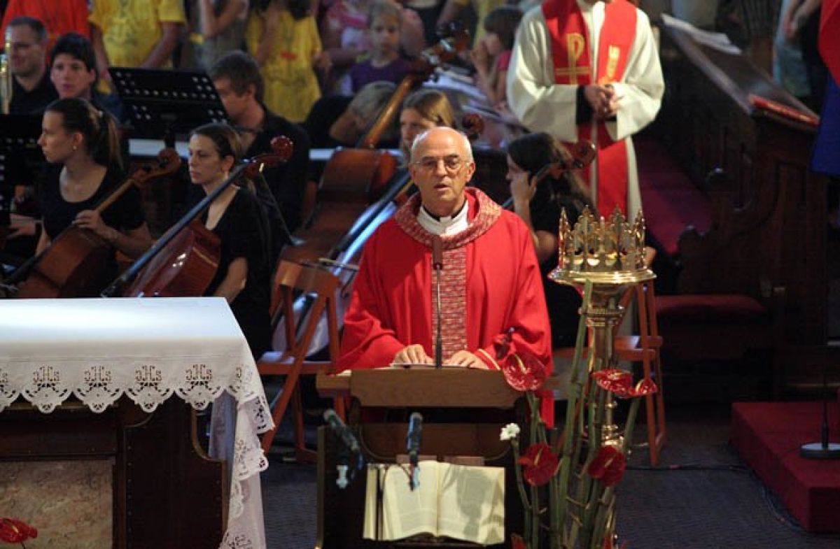 Nato so skavti prinesli in prižgali jubilejno svečo, namesto z običajno pridigo pa je škof Glavan vernike nagovoril v obliki pogovora z mladimi, ki so mu zastavljali vprašanja.