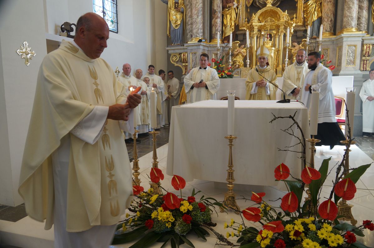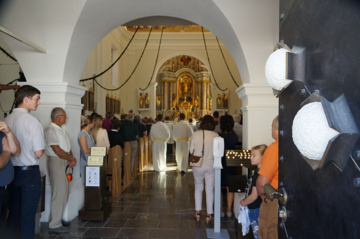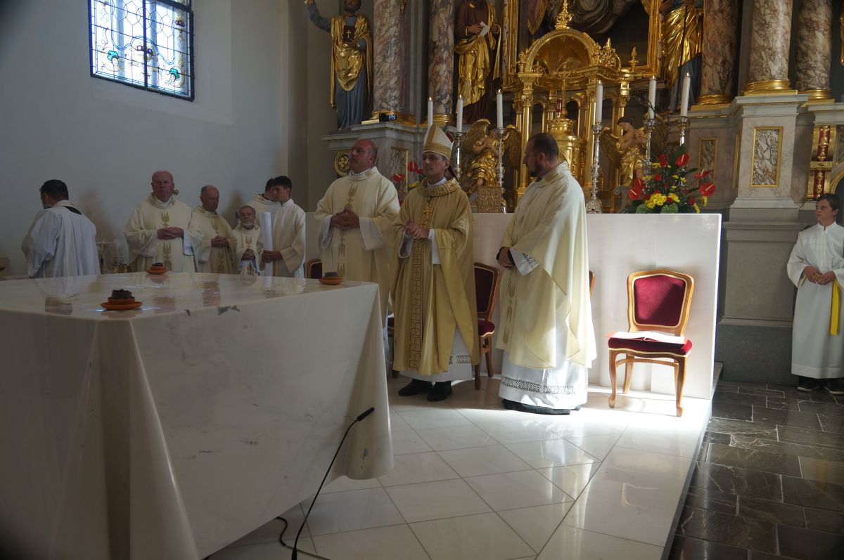 Cerkev je posvetil novomeški škof msgr. Andrej Saje. Bogatemu bogoslužju so lahko prisostvovali vsi zbrani, saj je bil prenos maše tudi zunaj cerkve.