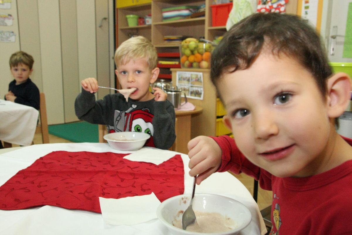 Postregli so jim z zdrobom, skuhanim v slovenskem mleku, ter slovenskim bio maslom in medom na domačem kruhu, manjkalo ni niti sadje. Kot je videti, je otrokom prav teknilo.