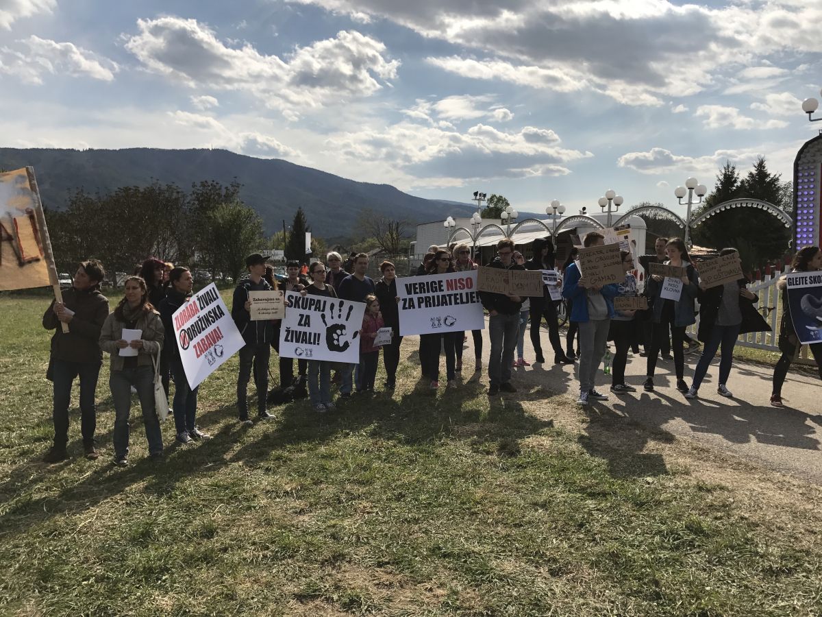 Kakšnih sto posameznikov je s transparenti opozarjalo na trpljenje živali v italijanskem cirkusu, ki te dni gostuje v štajerski prestolnici.