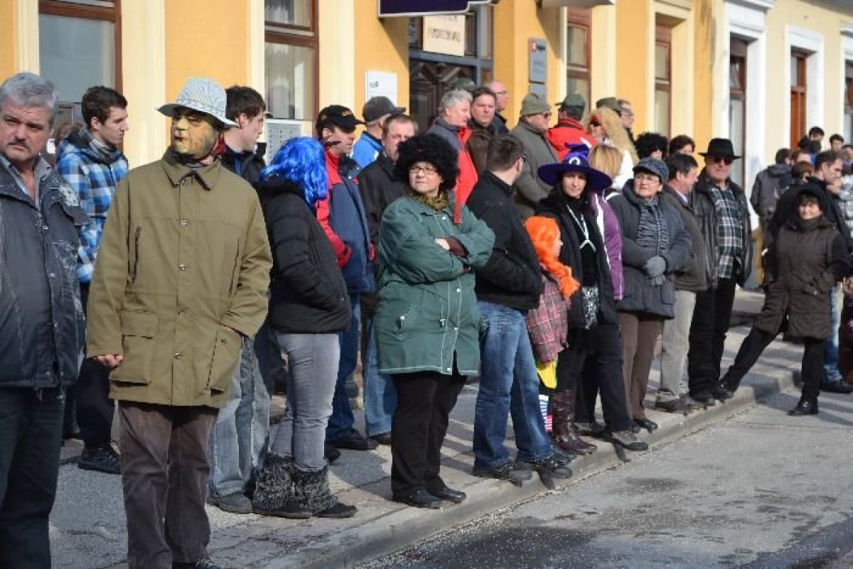 Današnje sončno nedeljsko popoldne so številni izkoristili za obisk Kostanjevice, tako za ogled pustne povorke kot za to, da so se našemljeni pridružili veselemu sprevodu, ki se je vil po mestnih ulicah. Takratna povorka je bila nadvse pisana, maske pa domiselne in izvirne, predvsem skupinske, ki so odražale predvsem aktualne razmere v državi.