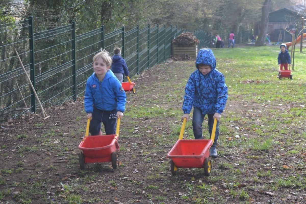 Zaposleni v tem vrtcu so skupaj s zaposlenimi iz sosednje Zavarovalnice Sava danes pometali parkirišča, otroci so z otroškimi grabljami in samokolnicami pobirali listje, nekaj jih je sodelovalo pri postavitvi »zvočne« ograje skupaj z vzgojitelji. Veliko dela in za otroke predvsem veliko igre, na koncu pa zaslužena malica za vse ob lepem pomladnem soncu.