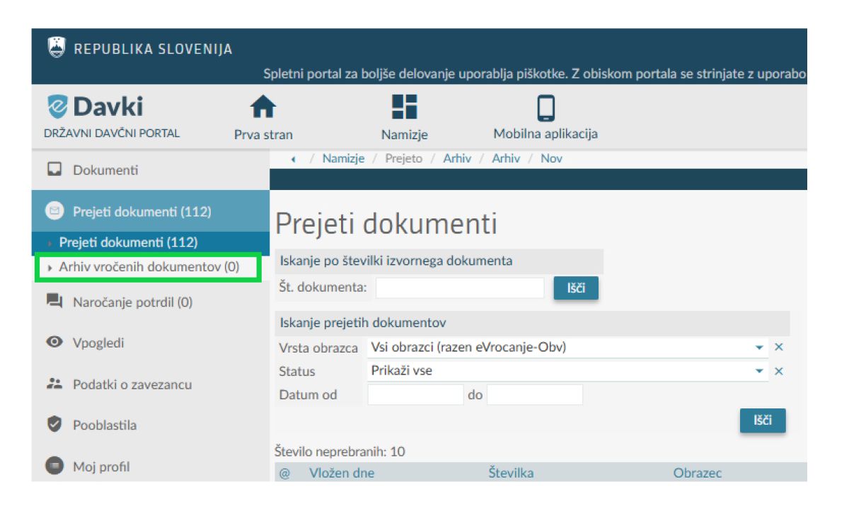 Dostop do arhiva je mogoč na prvi strani mobilne aplikacije eDavki in na portalu eDavki (v osebnem profilu vsakega davčnega zavezanca). V primeru, da imate ustrezno pooblastilo, je omogočeno, da iz arhiva naročite tudi dokumente za pooblastitelja.