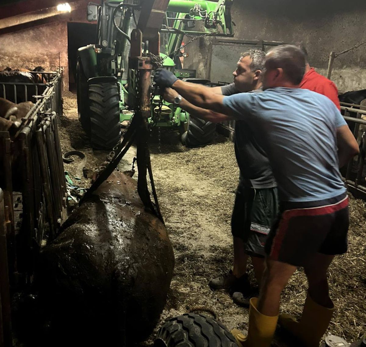 V soboto malo pred 23.00 so bili gasilci PGD Gabrje pri Dobovi aktivirani na tehnično pomoč - reševanje krav na kmetiji.